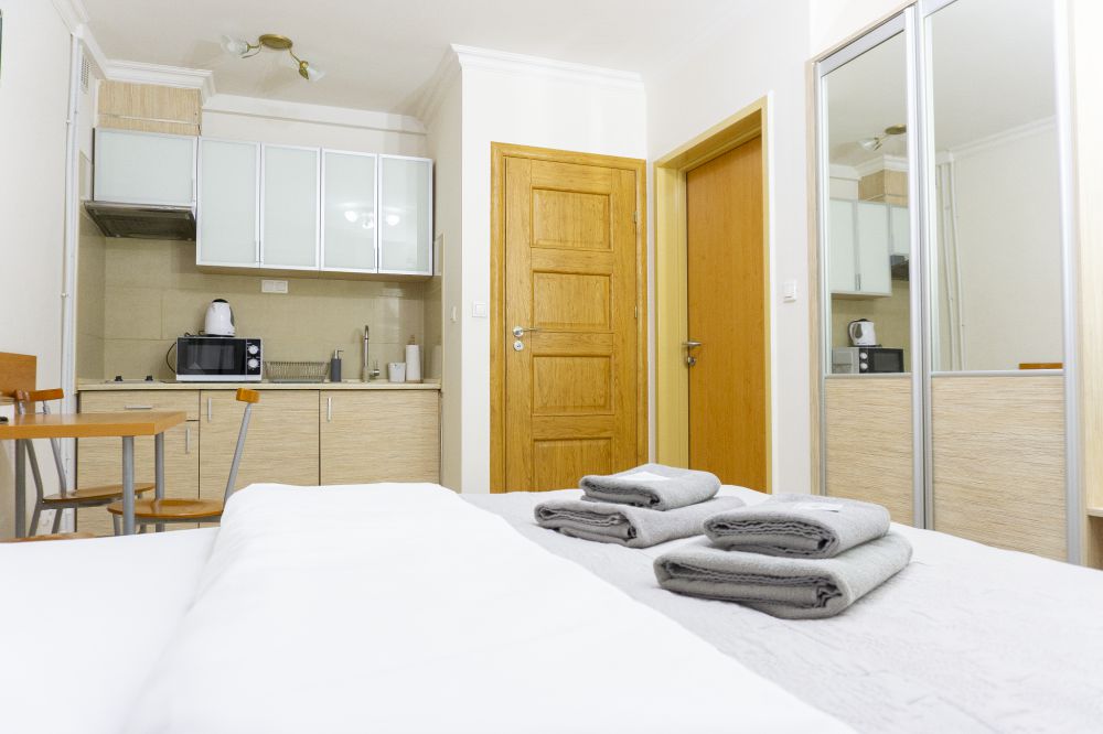 Apartament typu Studio położony jest w bliskiej odległości od Pałacu Kultury i Nauki oraz Dworca Centralnego. Mieszkanie jest jasne i przytulne z widokiem na miasto.